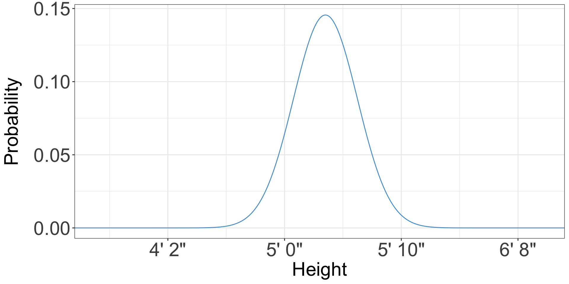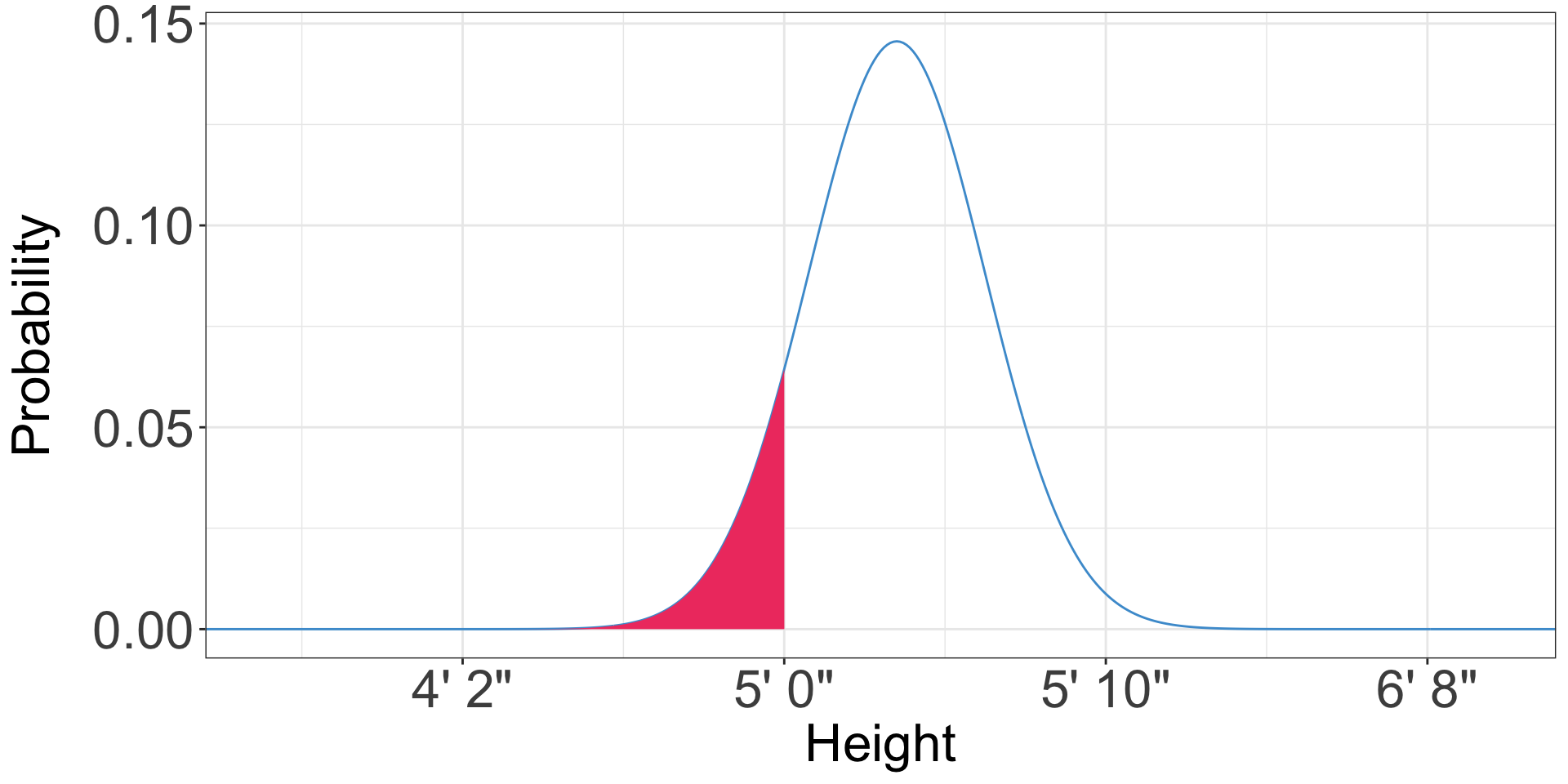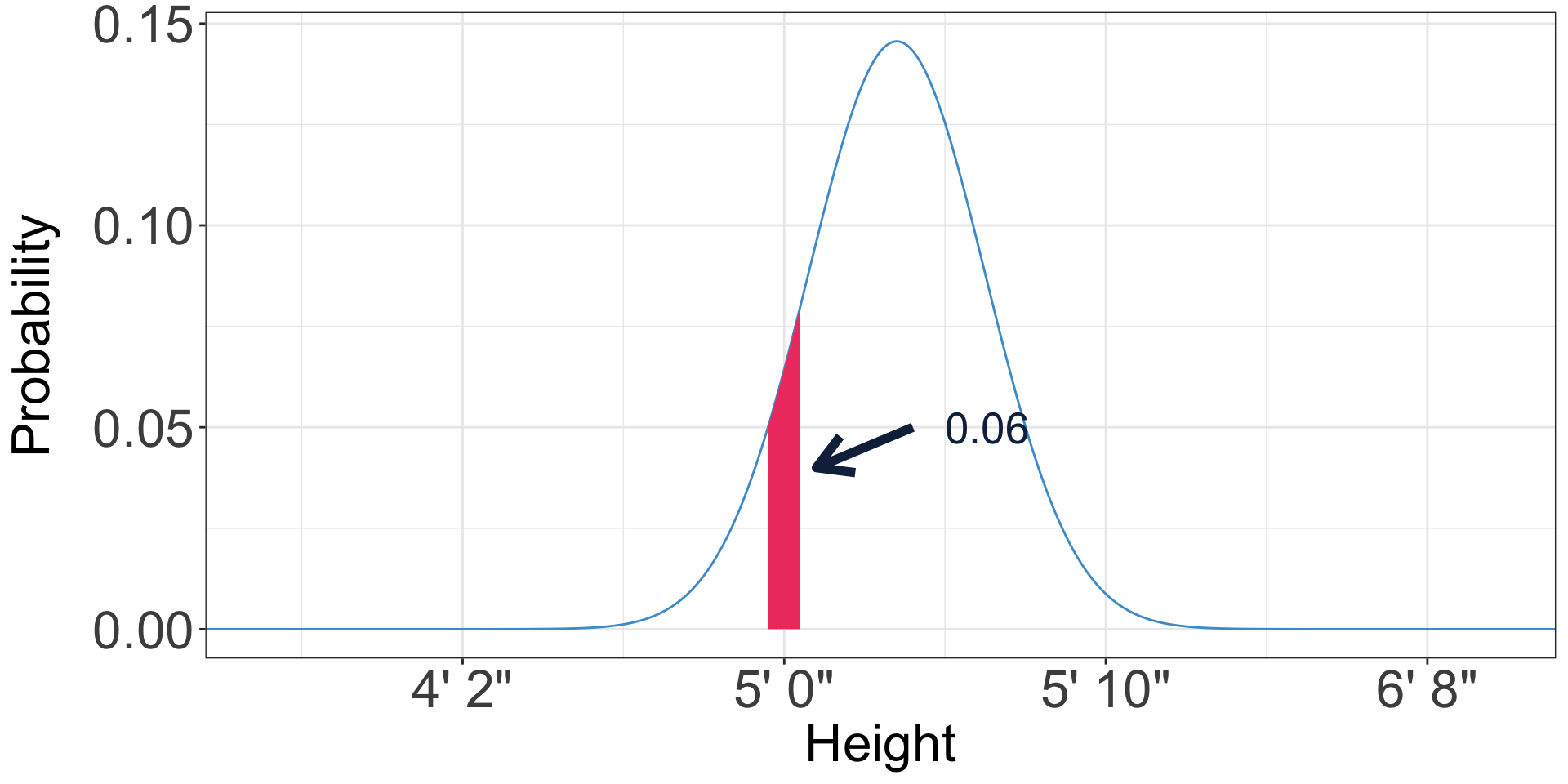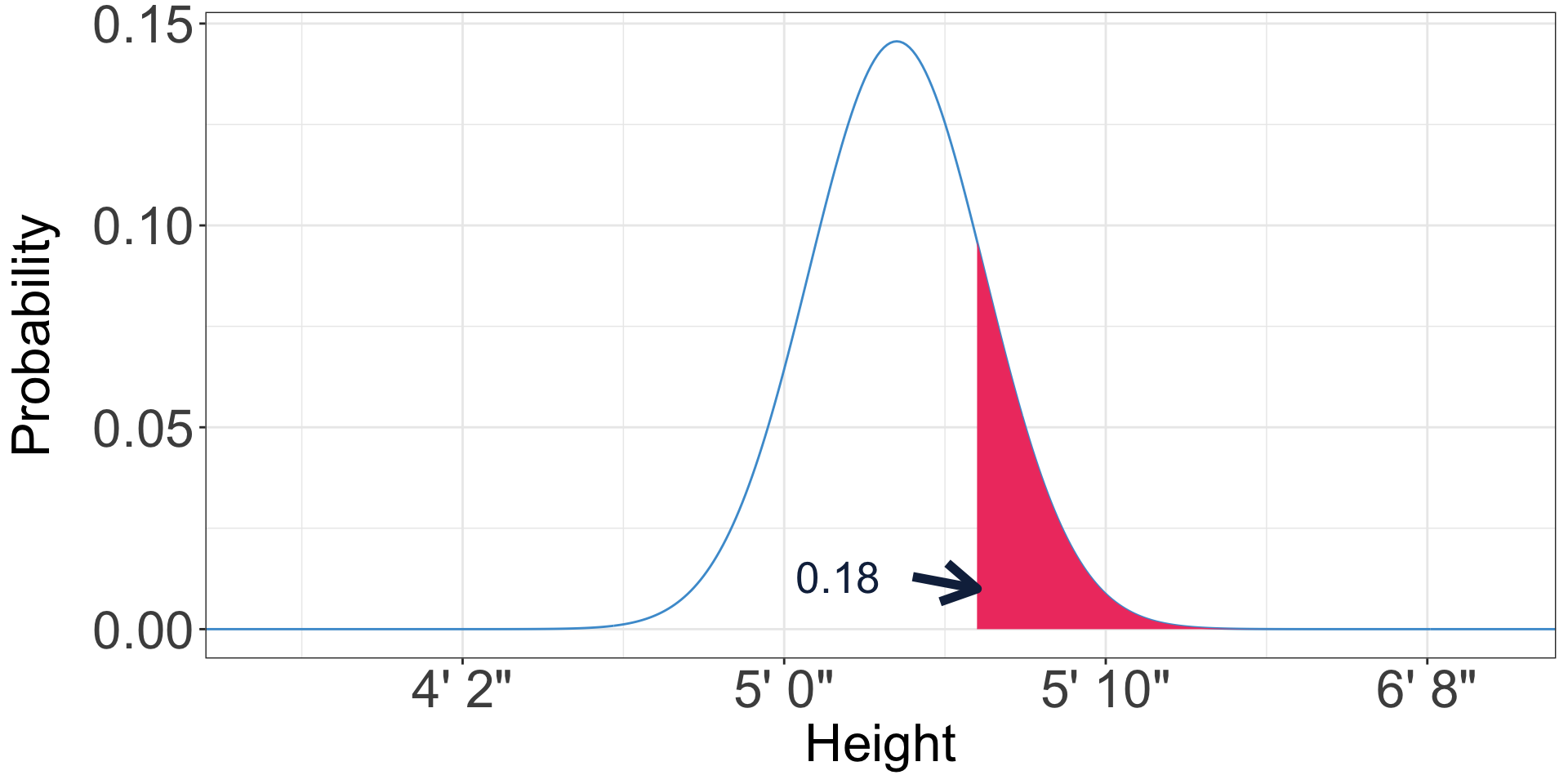 NORM.DIST function to calculate probabilities from normal distributions=NORM.DIST(60, 63.5, 2.74, TRUE) is the probability that an American woman is 5 feet (60 inches) or less=NORM.DIST(60, 63.5, 2.74, TRUE) is the probability that an American woman is 5 feet (60 inches) or lessArshad, Hu, and Ashraf (2018)