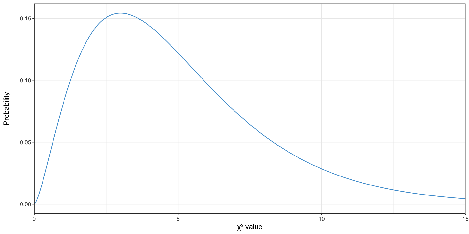 \[ \chi^2 = \sum\limits_{c=1}^{C} \sum\limits_{r=1}^{R} \frac{\left(O_{cr} - E_{cr}\right)^2}{E_{cr}} \]